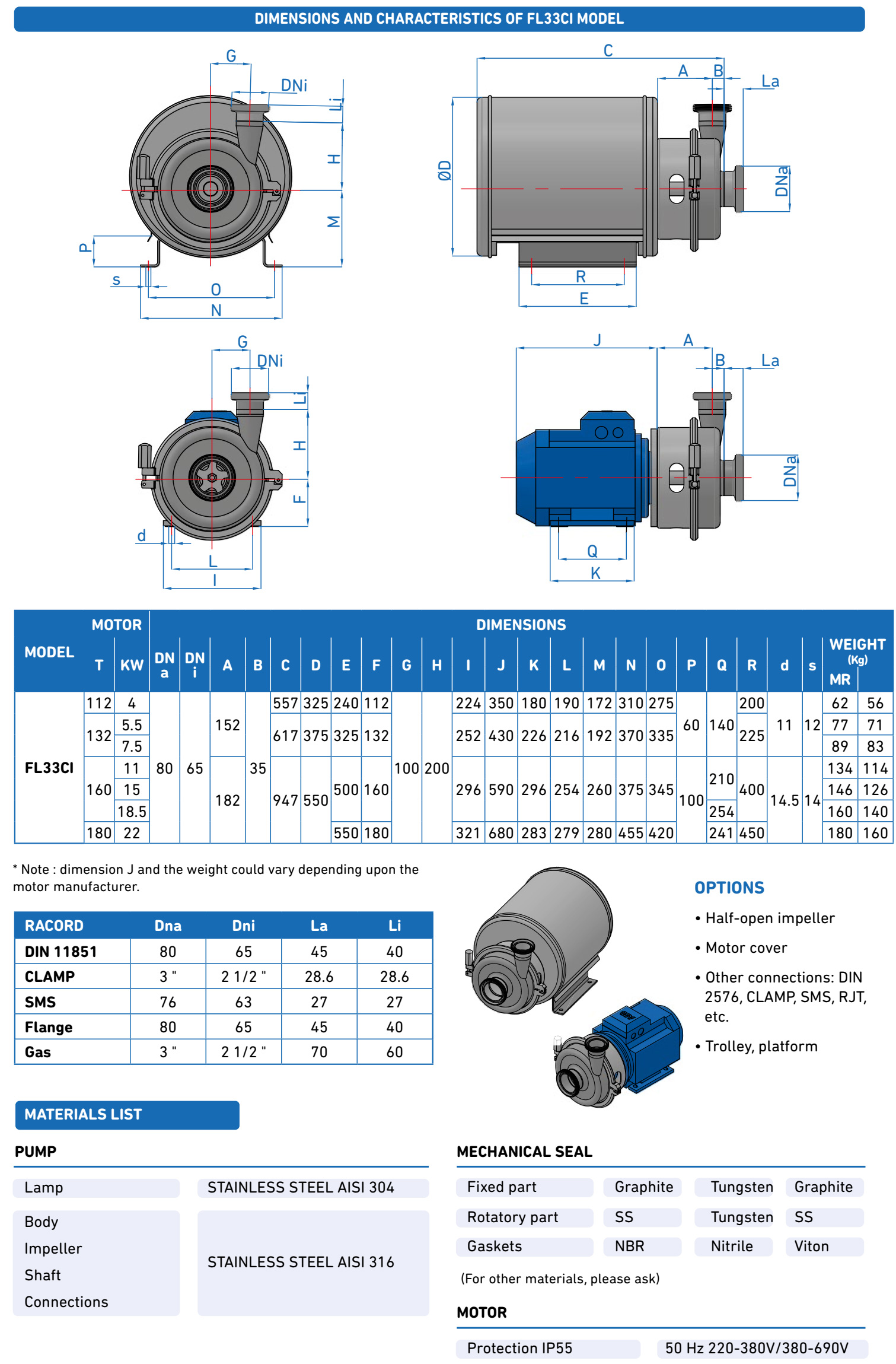 1. INOXMIM FL33CI – High-Capacity Stainless Steel Centrifugal Pump / INOXMIM FL33C1 – Bơm ly tâm inox 316 Thực Phẩm Lưu Lượng Lớn