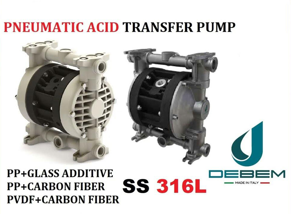 Debem’s air operated double diaphragm pumps are ideal for pumping liquids with high apparent viscosity, even if containing suspended solids. The stall-prevention circuit guarantees a safe operation, without requiring lubricated air. / Các dòng bơm màng đôi khí nén của Debem là lựa chọn lý tưởng để bơm các chất lỏng có độ nhớt cao, ngay cả khi có chứa chất rắn lơ lửng. Mạch chống kẹt (stall-prevention) đảm bảo vận hành an toàn, không cần sử dụng khí bôi trơn.