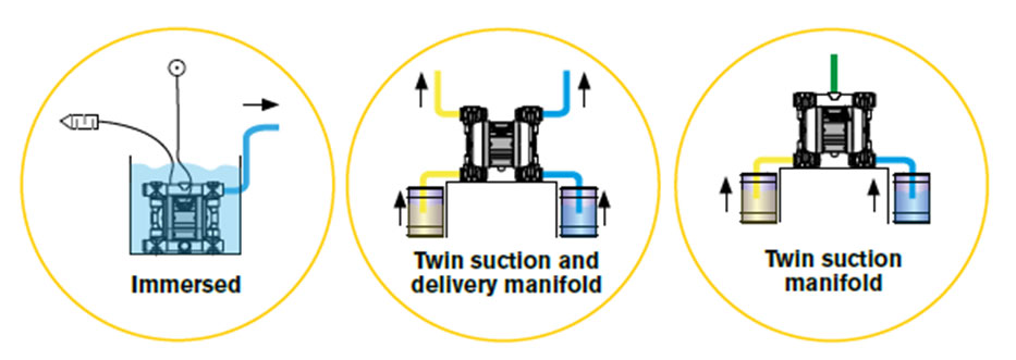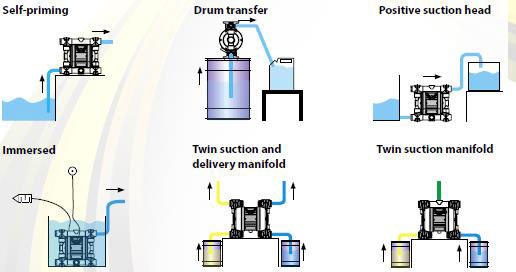 After delving into the modes of operation of diaphragm pumps, it is possible to define the different modes of installation. The latter include the following modes. / Sau khi tìm hiểu về nguyên lý hoạt động của bơm màng, chúng ta có thể xác định các phương thức lắp đặt khác nhau. Các phương án lắp đặt bao gồm như sau:
