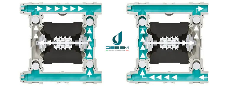 The air exchange cycle in double diaphragm pumps / Chu trình trao đổi khí trong máy bơm màng đôi khí nén Debem