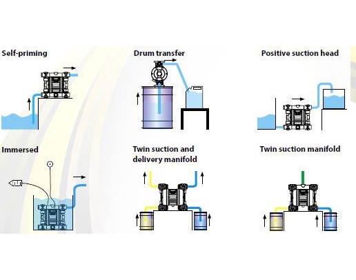 After delving into the modes of operation of diaphragm pumps, it is possible to define the different modes of installation. The latter include the following modes. / Sau khi tìm hiểu về nguyên lý hoạt động của bơm màng, chúng ta có thể xác định các phương thức lắp đặt khác nhau. Các phương án lắp đặt bao gồm như sau: