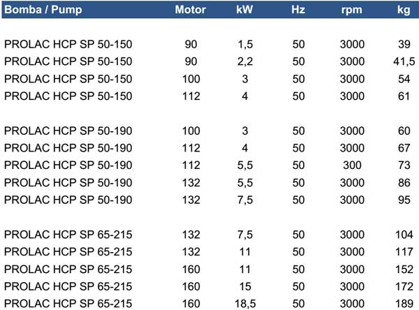 Download bảng thông số chọn bơm Inoxpa PROLAC HCP SP