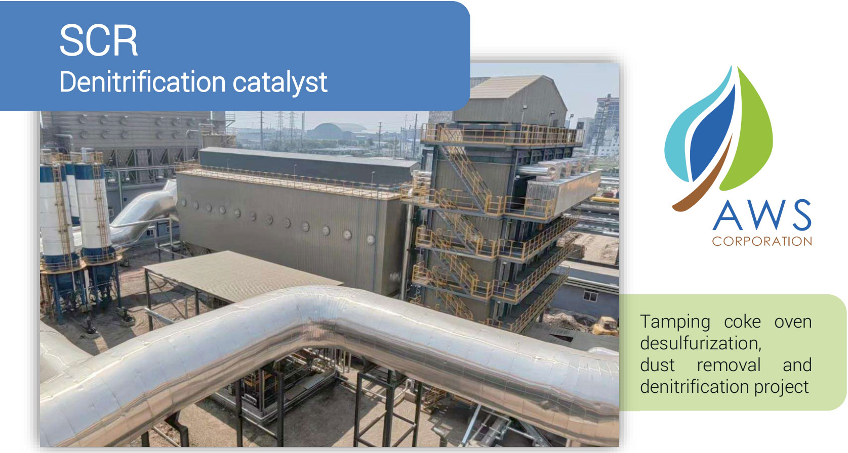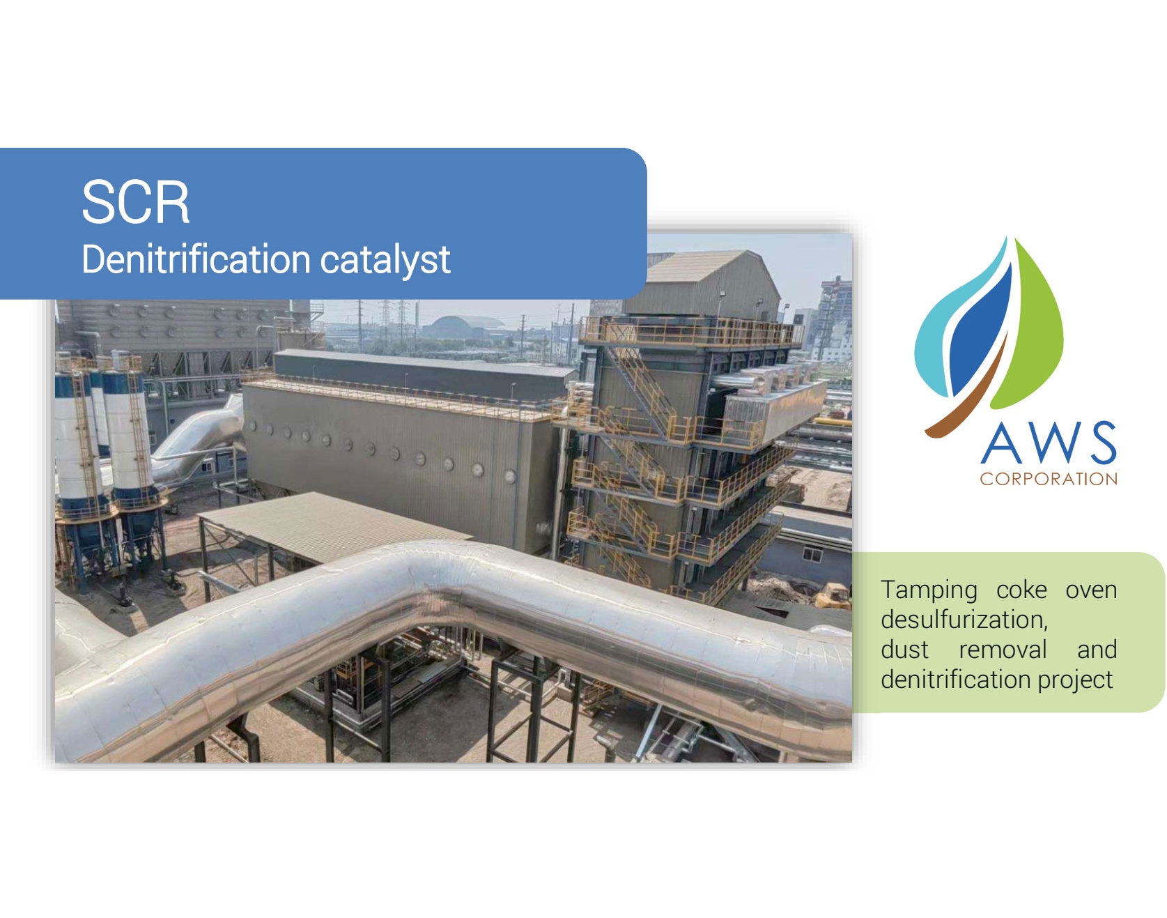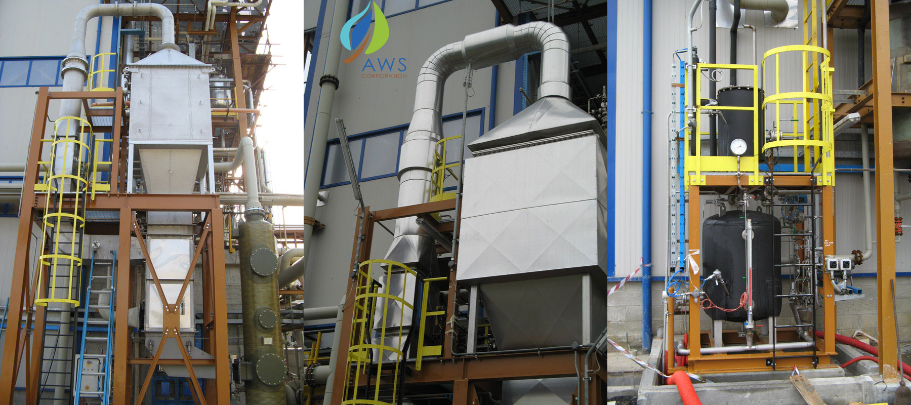 AWS Corporation offers a full range of air pollution control technologies, waste and primary water treatments and industrial fluids purification systems. The “air pollution control division” is specialized in the design of scrubbers, catalytic deNOx systems, regenerative and catalytic combustors, dry absorption, brownian filtration, wet and dry electrostatic precipitators. / Công ty AWS cung cấp đầy đủ các công nghệ kiểm soát ô nhiễm không khí, xử lý chất thải và nước thô, cũng như các hệ thống tinh lọc chất lỏng công nghiệp. “Bộ phận kiểm soát ô nhiễm không khí” chuyên thiết kế các thiết bị như scrubber, hệ thống khử NOx xúc tác, lò đốt tái sinh và xúc tác, hấp thụ khô, lọc Brownian, và bộ lọc tĩnh điện ướt và khô.