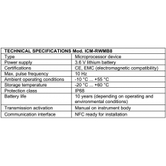 - MID được phê duyệt theo Chỉ thị Châu Âu 2014/32CE (mô-đun B + D) tuân thủ các tiêu chuẩn ISO 4064, EN 14154 và OIML R49