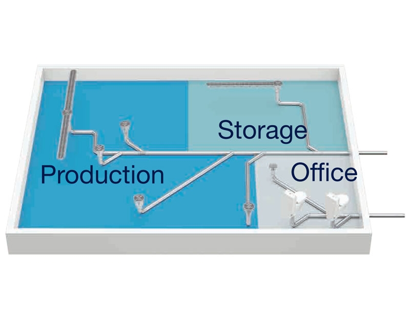 Hygiene-sensitive areas should be segregated from less hygiene demanding areas, and the flow of drainage must be away from the clean areas, such as production lines, towards areas with less strict hygiene requirements, e.g. storage rooms. / Các khu vực nhạy cảm về vệ sinh nên được tách biệt với các khu vực có yêu cầu vệ sinh thấp hơn, và dòng chảy của nước thải phải được dẫn đi từ các khu vực sạch — như dây chuyền sản xuất về phía các khu vực ít yêu cầu vệ sinh hơn, chẳng hạn như khu vực lưu trữ.