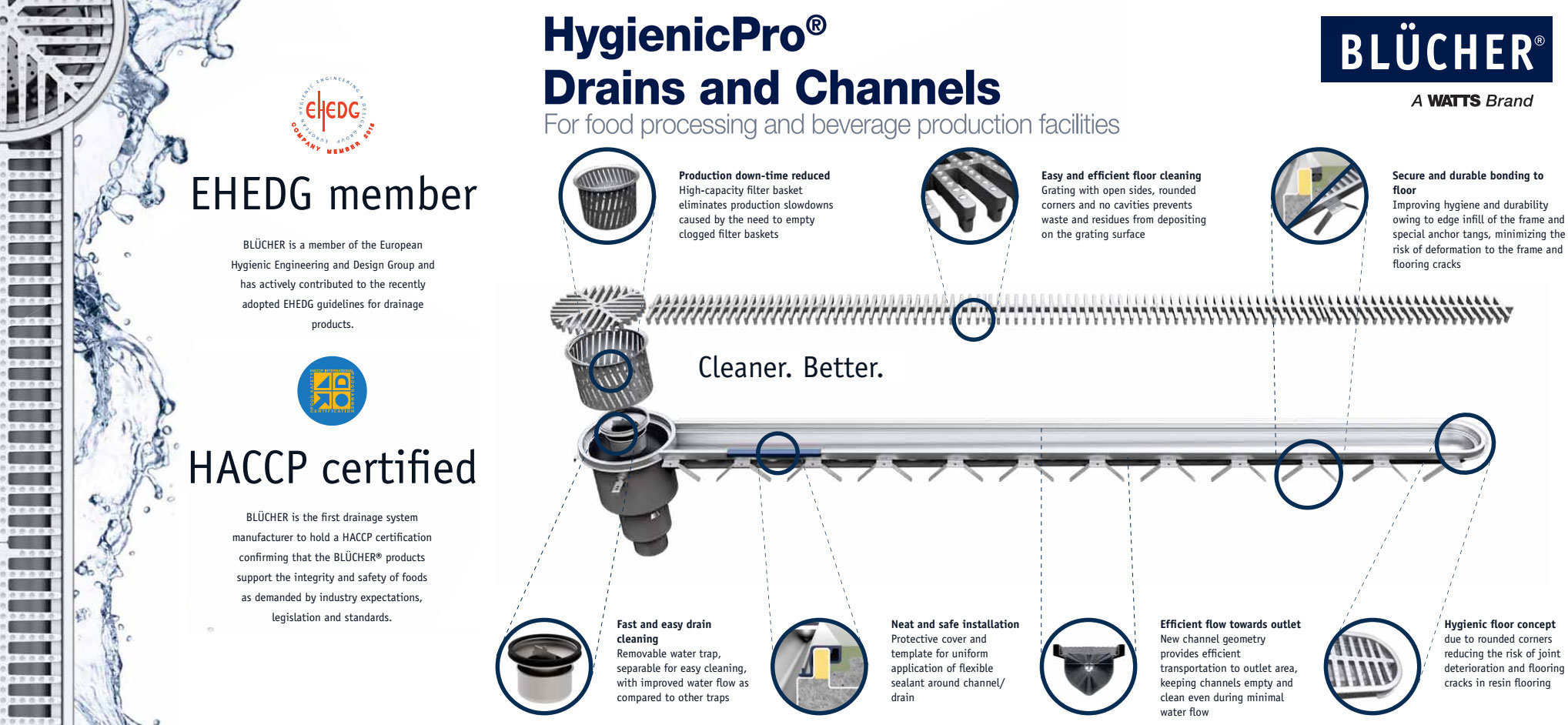 Based on 50 years’ experience in the production of stainless steel drainage system, BLÜCHER has taken up the challenge and is now introducing the HygienicPro® drainage products for the food processing industry. / Dựa trên 50 năm kinh nghiệm trong sản xuất hệ thống thoát nước bằng thép không gỉ, BLÜCHER đã đón nhận thách thức và hiện giới thiệu dòng sản phẩm HygienicPro® dành cho ngành công nghiệp chế biến thực phẩm.