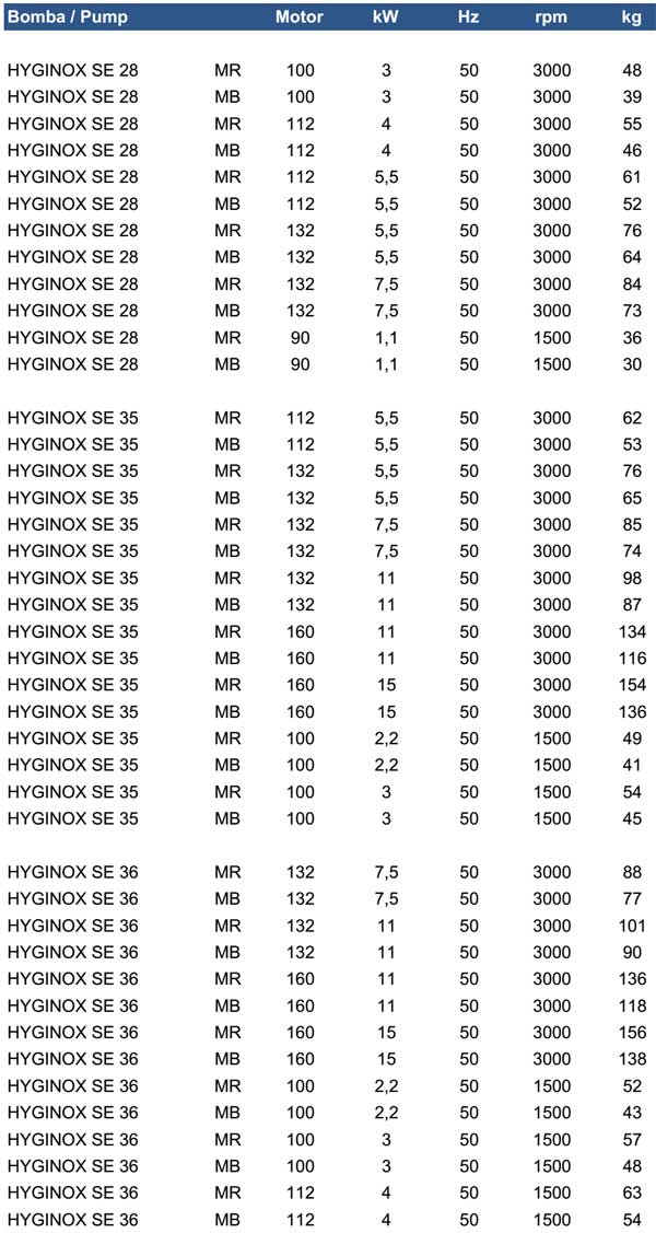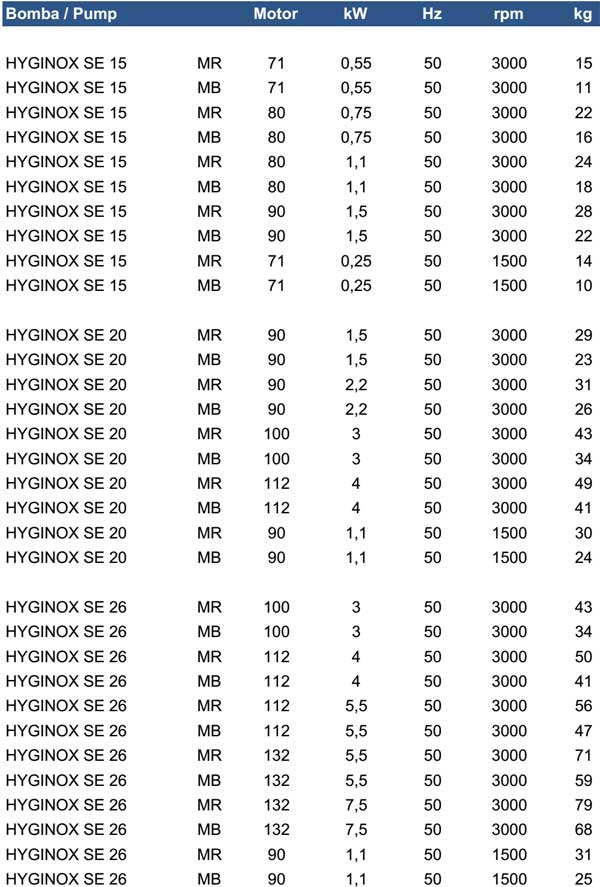 Hyginox SE is a range of close-coupled centrifugal pumps with sanitary design, compact and efficient. It is made of a cold-formed stainless steel casing, stainless steel open impeller (investment casting), mechanical seal, pump cover, lantern and shaft, connected to the motor shaft by mechanical compression.