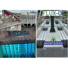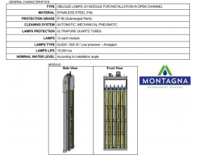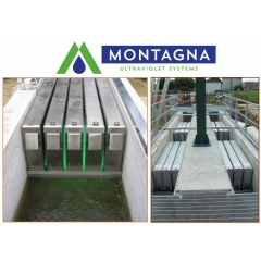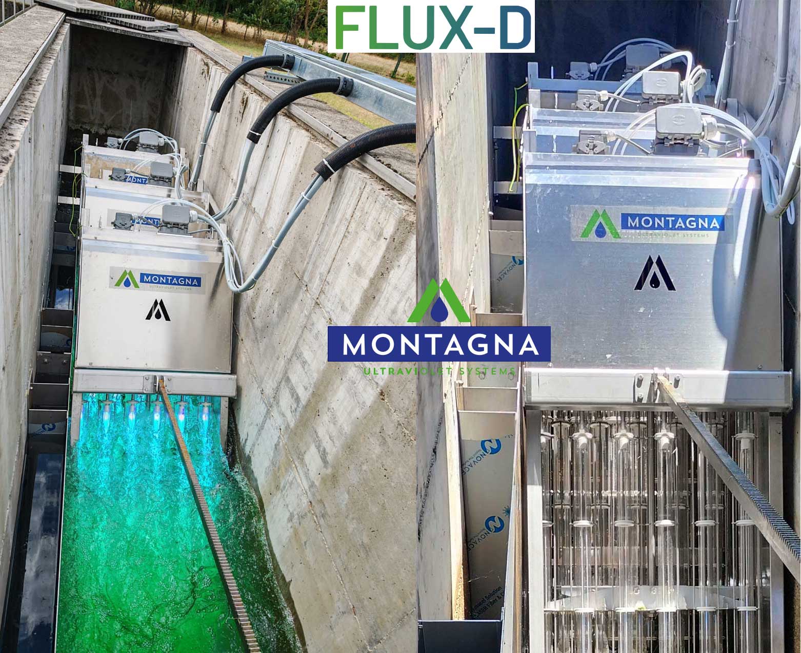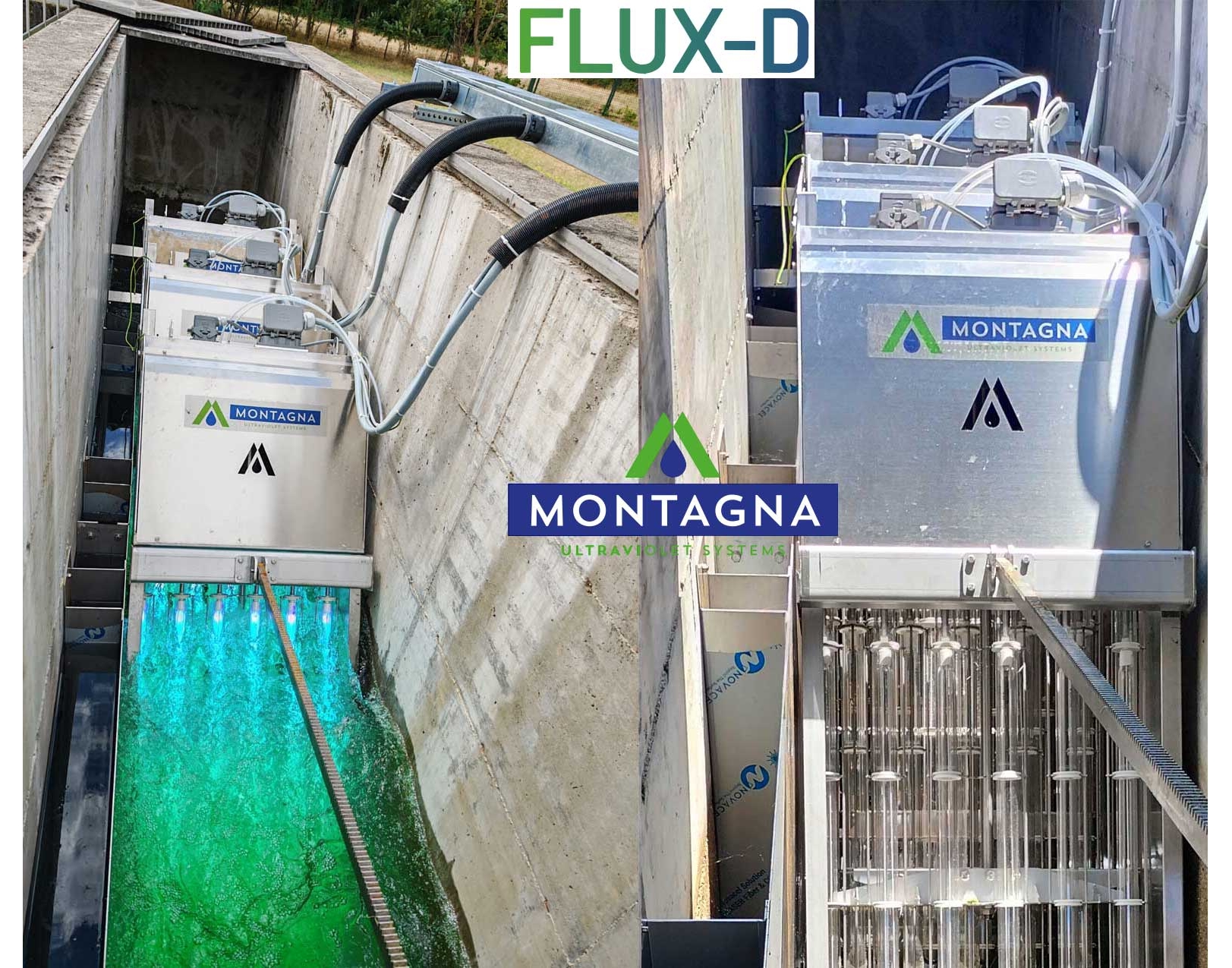 The competence of company MONTAGNA in wastewater treatment and the proven disinfection results in several hundreds of running installations in various markets, together with the most modern design criteria, make FLUX D system line the natural evolution of FLUX V vertical lamps system configuration designed and manufactured by Montagna since 1990s for wastewater disinfection. / Năng lực chuyên môn của công ty MONTAGNA trong lĩnh vực xử lý nước thải cùng với hiệu quả khử trùng đã được chứng minh qua hàng trăm hệ thống đang vận hành tại nhiều thị trường khác nhau, kết hợp với các tiêu chí thiết kế hiện đại, đã giúp dòng FLUX D trở thành bước phát triển tự nhiên từ cấu hình đèn thẳng đứng của dòng FLUX V – được Montagna thiết kế và sản xuất từ những năm 1990 cho các ứng dụng khử trùng nước thải.