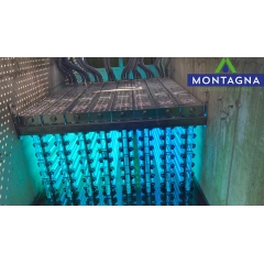 The Montagna Open Channel UV offers safe, chemical-free disinfection for municipal and industrial wastewater disinfection. The Montagna™ 16 000-hour UV lamps technology with its cross-row layout ensures complete pathogen exposure with market leading energy efficiency. / Hệ thống UV kênh hở Montagna cung cấp giải pháp khử trùng an toàn, không hóa chất cho nước thải đô thị và công nghiệp. Công nghệ đèn UV Montagna™ tuổi thọ 16.000 giờ với bố trí đèn so le nhiều hàng đảm bảo tiếp xúc mầm bệnh hoàn toàn, đồng thời đạt hiệu suất năng lượng hàng đầu thị trường.