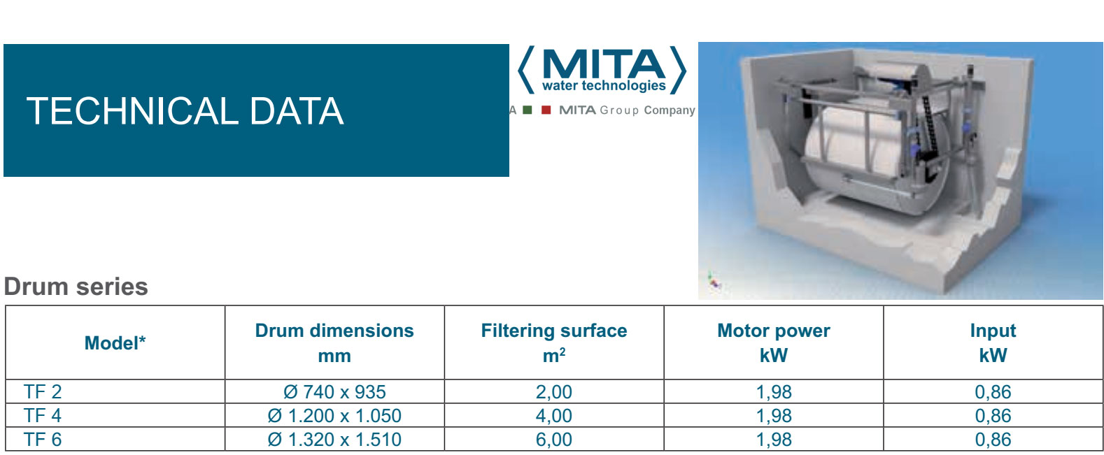The MITA filter produces high quality filter effluent of less than 5mg/l Total Suspended Solids (TSS) and can help reduce BOD5 as this is normally tied to the solids content of the effluent. Phosphorous Removal (P-Removal) is becoming the set standard for tertiary treatment and the MITA Pile Cloth Filter can achieve P-Removal rates as low as 0.10mg/l. / Bộ lọc MITA có thể tạo ra nước sau lọc có TSS nhỏ hơn 5 mg/L, đồng thời giảm BOD₅ (vì BOD thường gắn liền với hàm lượng chất rắn trong nước). Đối với xử lý bậc ba, yêu cầu loại bỏ photpho (P-Removal) ngày càng khắt khe hơn — và MITA Pile Cloth Filter có thể đạt hiệu suất loại bỏ photpho xuống đến 0,10 mg/L.