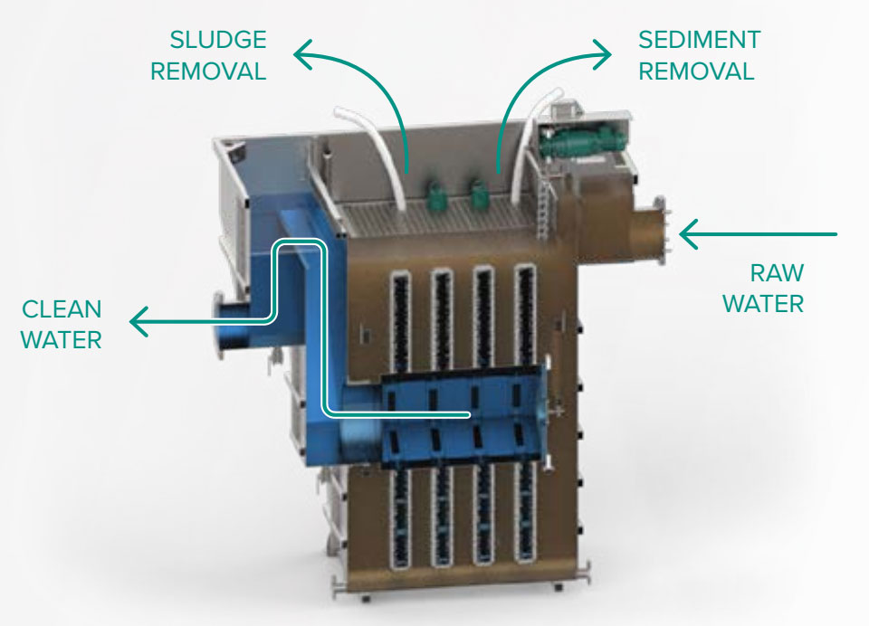The MITA filter is unique, in that it can backwash in both clock and anti-clockwise directions, which helps to remove more solids. / Hệ thống MITA có thể rửa ngược theo cả hai chiều (thuận và nghịch) — giúp loại bỏ cặn hiệu quả hơn.