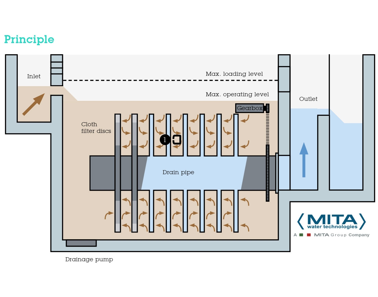 Bộ lọc vải sợi MITA (MITA Cloth Pile Filter) là công nghệ tiên tiến nhất hiện nay trong việc giảm nồng độ chất rắn lơ lửng (TSS) và loại bỏ photpho (P-Removal). Công nghệ lọc này kết hợp hiệu suất lọc cao với chất lượng nước đầu ra vượt trội, phù hợp cho cả nước thải đô thị, công nghiệp và các ứng dụng tái sử dụng nước.
