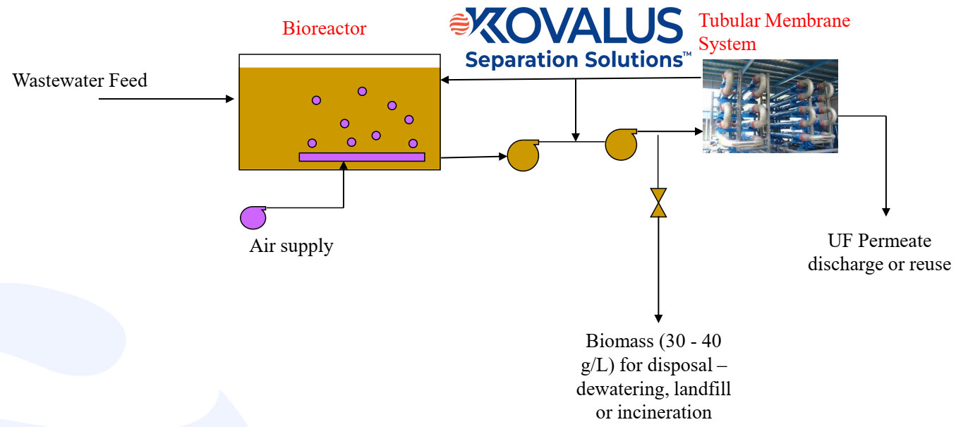 Công nghệ MBR về bản chất là phiên bản cải tiến hiệu suất cao của quy trình bùn hoạt tính truyền thống, trong đó bể lắng được thay thế bằng mô-đun màng UF dạng ống (tubular UF modules).