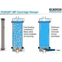 Màng UF KOCH ASPIDA ™ 8081 sử dụng vật liệu PVDF được thiết kế độc quyền. Kích thước lỗ màng là 0,03 μm. Hàng rào vật lý này ngăn các phân tử lớn (ví dụ vi khuẩn và mầm bệnh, v.v.) và vi sinh vật đi qua bề mặt của sợi, trong khi các chất có trọng lượng phân tử tương đối thấp (ví dụ: nước và chất rắn hòa tan) có thể đi qua màng, trở thành nước sạch.