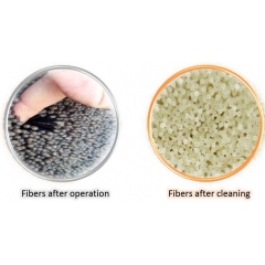 Để ngăn ngừa tắc nghẽn màng, không khí cọ rửa được đưa vào từ đáy hộp mực, có thể thổi toàn bộ chiều dài của sợi một cách hiệu quả và loại bỏ các chất đọng lại trên bề mặt màng. Các chất này sẽ rời khỏi hệ thống bằng cách xả ngược và thoát nước định kỳ của bể màng.