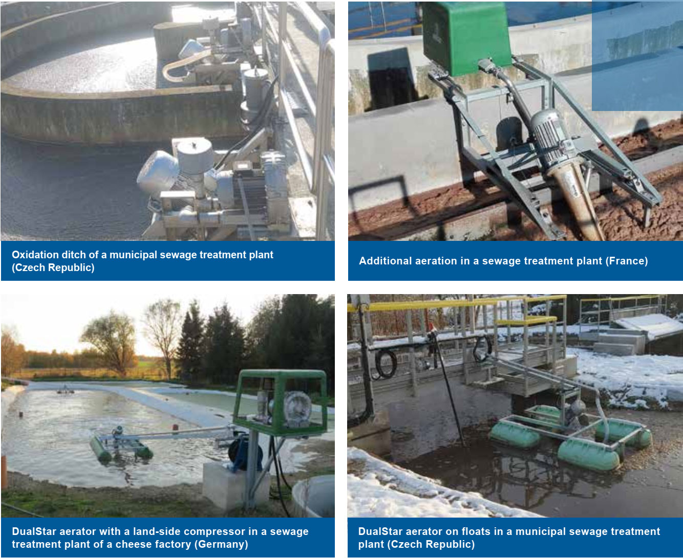 Các thiết bị sục khí DualStar có thể dễ dàng tích hợp vào các hệ thống hiện có và rất thuận tiện trong việc lắp đặt. Việc chuyển đổi hoặc nâng cấp được thực hiện mà không cần dừng hoạt động hoặc xả cạn hồ. Không cần xây dựng nhà che, đường ống khí nén, nắp đậy hoặc cửa tràn điều chỉnh. Vỏ bảo vệ giúp ngăn ngừa việc tạo ra nước bắn tung khi trục quay trong nước thải, đồng thời tránh hình thành băng trong điều kiện thời tiết lạnh giá.