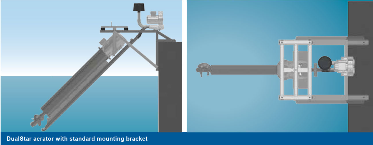 Đối với các bể có mực nước ổn định, thiết bị sục khí DualStar sẽ được gắn vào tường bể hoặc các cầu máy hiện có bằng giá đỡ làm từ thép định hình. Các giá đỡ này được thiết kế và điều chỉnh riêng theo điều kiện thực tế của từng dự án.