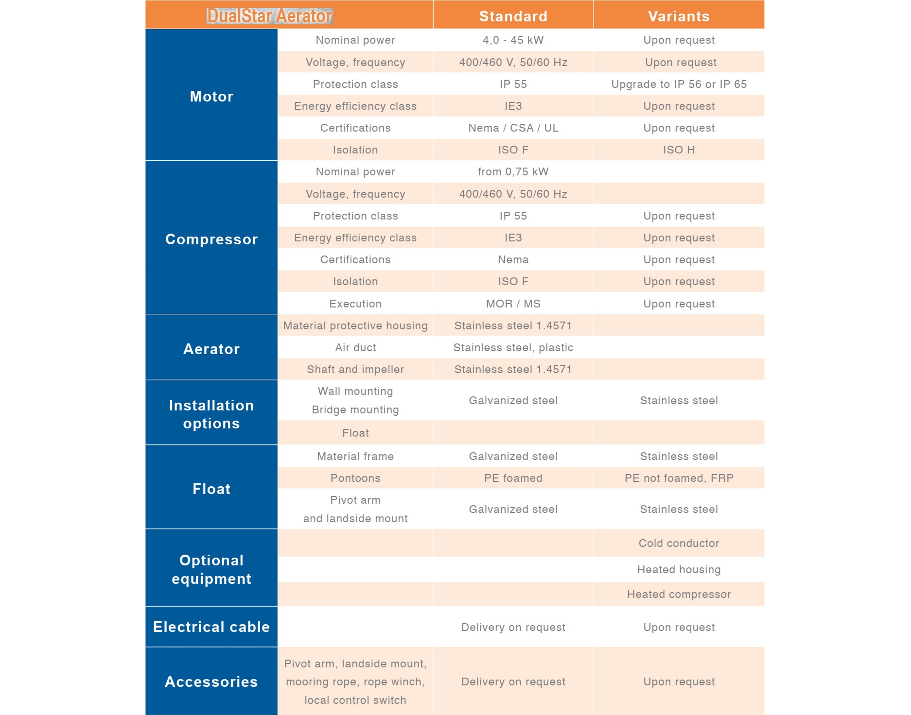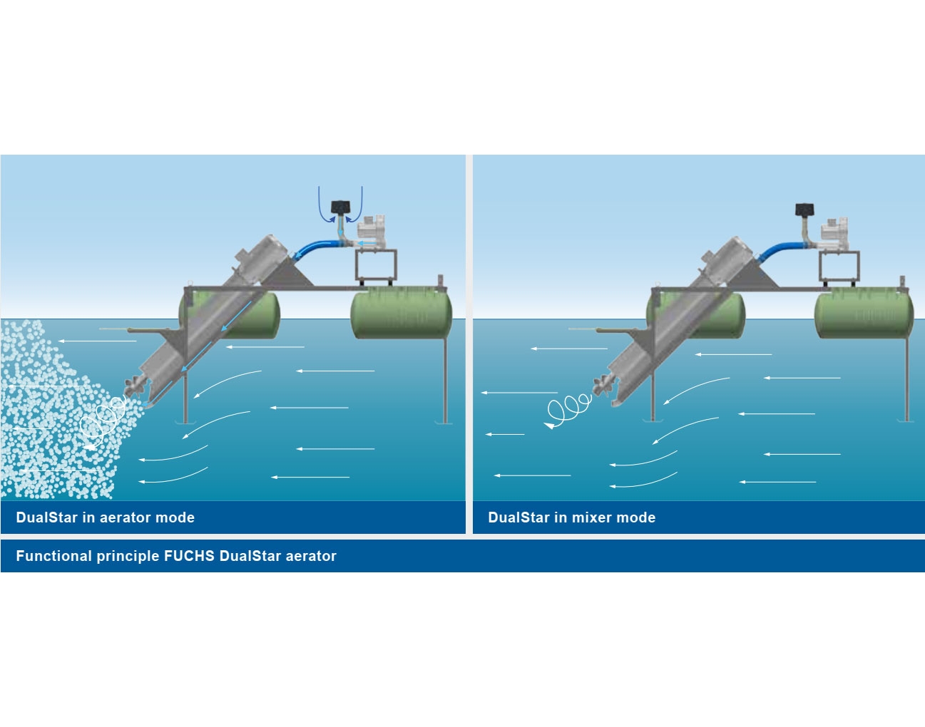 Máy sục khí FUCHS DualStar là phiên bản phát triển tiếp theo của máy sục khí OxyStar® đã thành công trên toàn cầu, kết hợp hai chức năng quan trọng nhất trong xử lý nước thải: sục khí và khuấy trộn. Chúng là lựa chọn phù hợp khi nước thải cần được sục khí hoặc chỉ khuấy trộn.