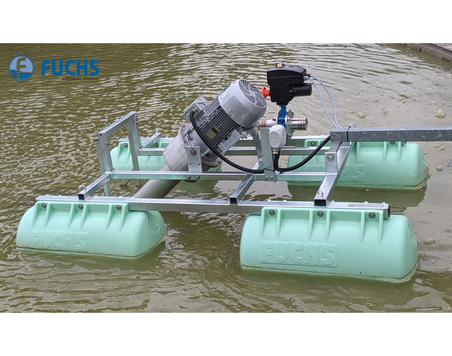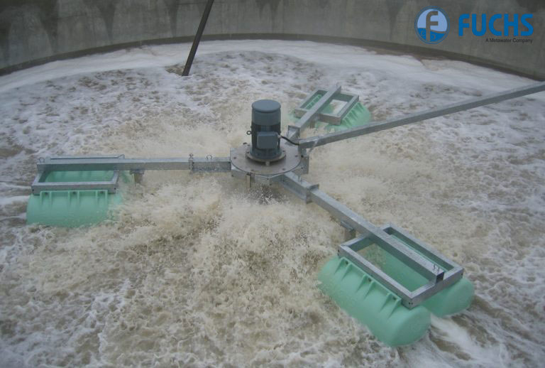 - Máy sục khí bề mặt FUCHS với trục thẳng đứng và khả năng vận hành ổn định.