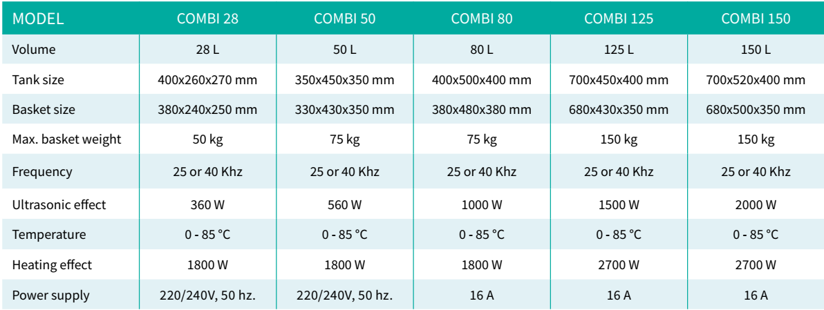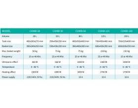 Thông số kỹ thuật Máy Làm Sạch Siêu Âm Ngành Gia Công Kim Loại_ COMBI Series