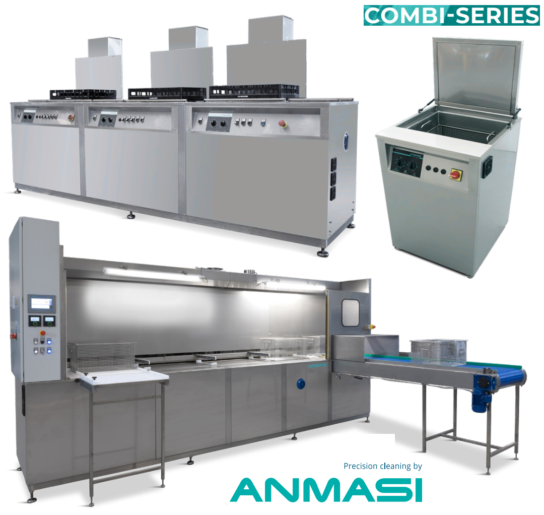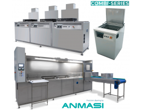 Loại máy này phù hợp cho các ứng dụng công nghiệp, có thể kết hợp với xử lý thủ công hoặc tự động, ví dụ như vận hành bằng robot. Máy rửa siêu âm Combi thường được sử dụng để loại bỏ dầu, dung dịch làm mát, chất bôi trơn, rỉ sét và sơn khỏi bề mặt chi tiết.