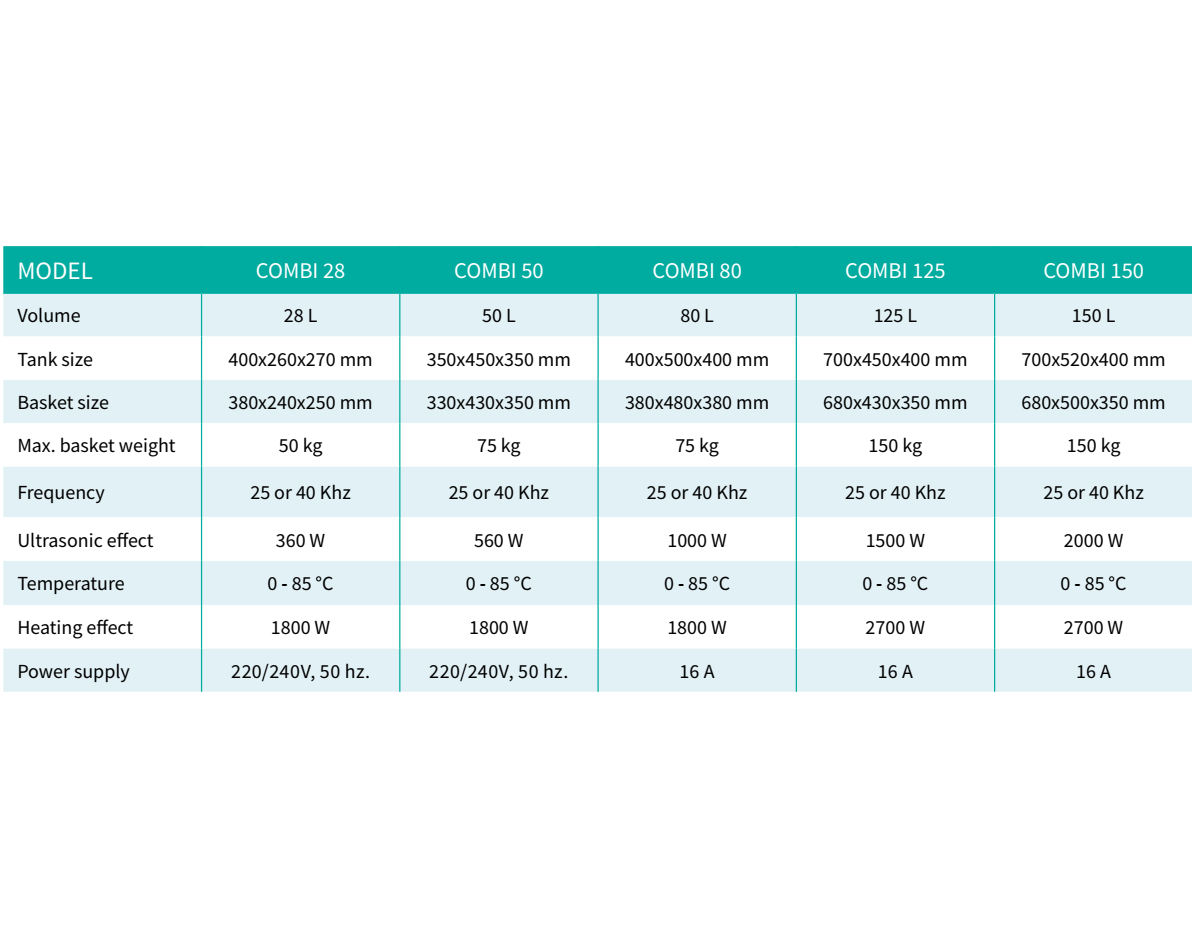 Model: COMBI Series (COMBI 28, COMBI 50, COMBI 80, COMBI 125, COMBI 150)