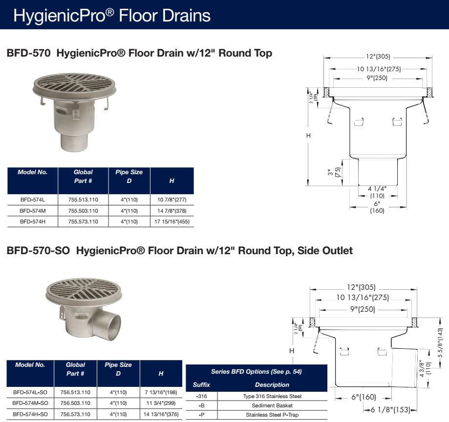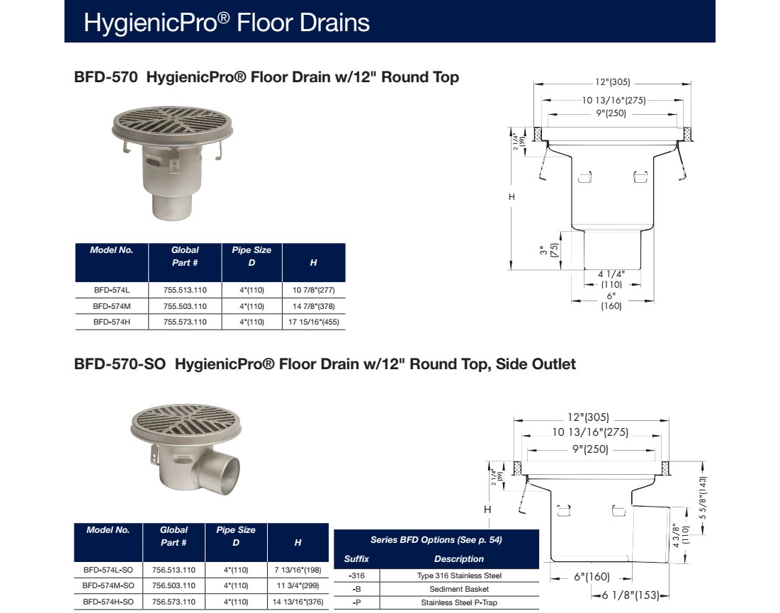 Model: HygienicPro Drain (Code: 755.513.110, 755.503.110, 755.573.110, 756.513.110, 756.503.110, 756.573.110)
